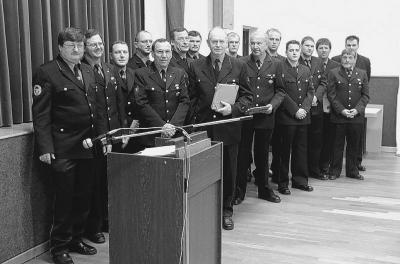 Für 25 Jahre Dienst in der Feuerwehr wurden ausgezeichnet: Richard Renner (Hausen) und Edwin Röger (Bissingen). Verabschiedet wurde nach 33 Dienstjahren Johannes Römer von der Abteilung Bissingen. Begrüßt wurden ferner fünf neu eingetretene Kameraden. (Quelle: HNP 03.04.2006)